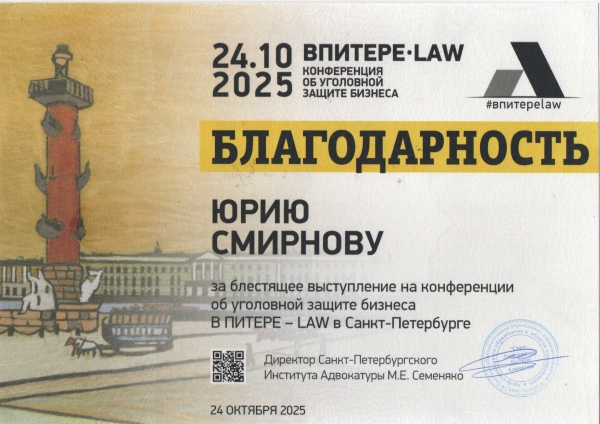 Адвокат Смирнов является организатором и постоянным участником круглых столов и конференций, посвящённых методике и тактике адвокатской деятельности, проводит обучающие мероприятия для коллег.